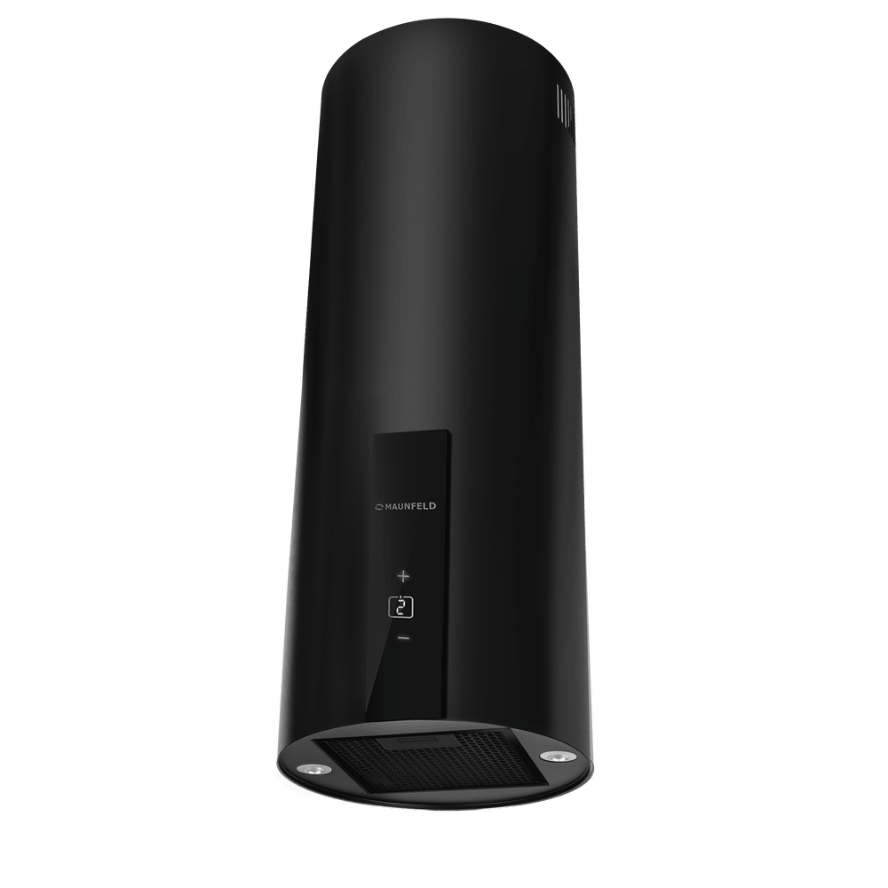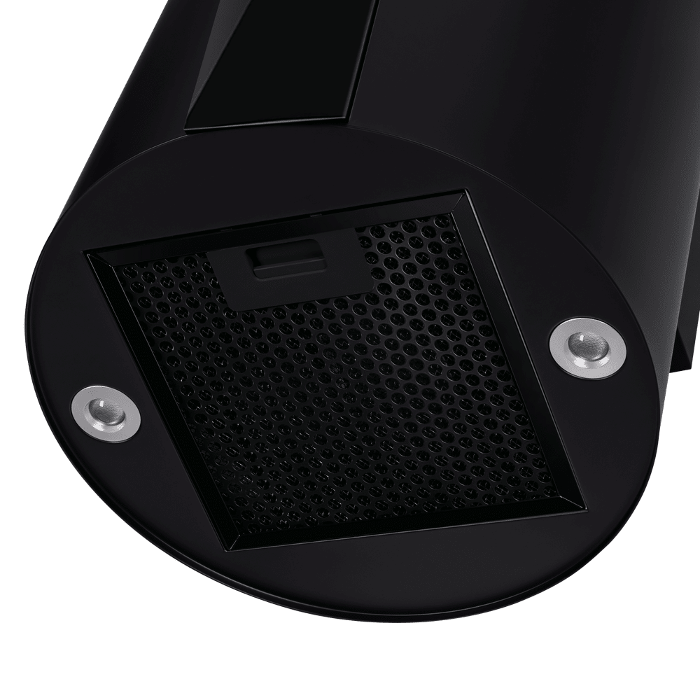 - Стильный черный цилиндрический корпус: Лаконичная цилиндрическая форма и глубокий черный цвет в стиле Модерн делают вытяжку стильным акцентным элементом современной кухни.