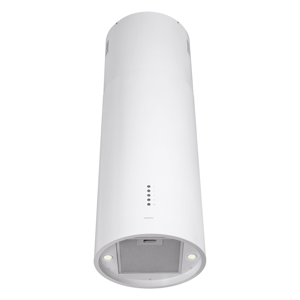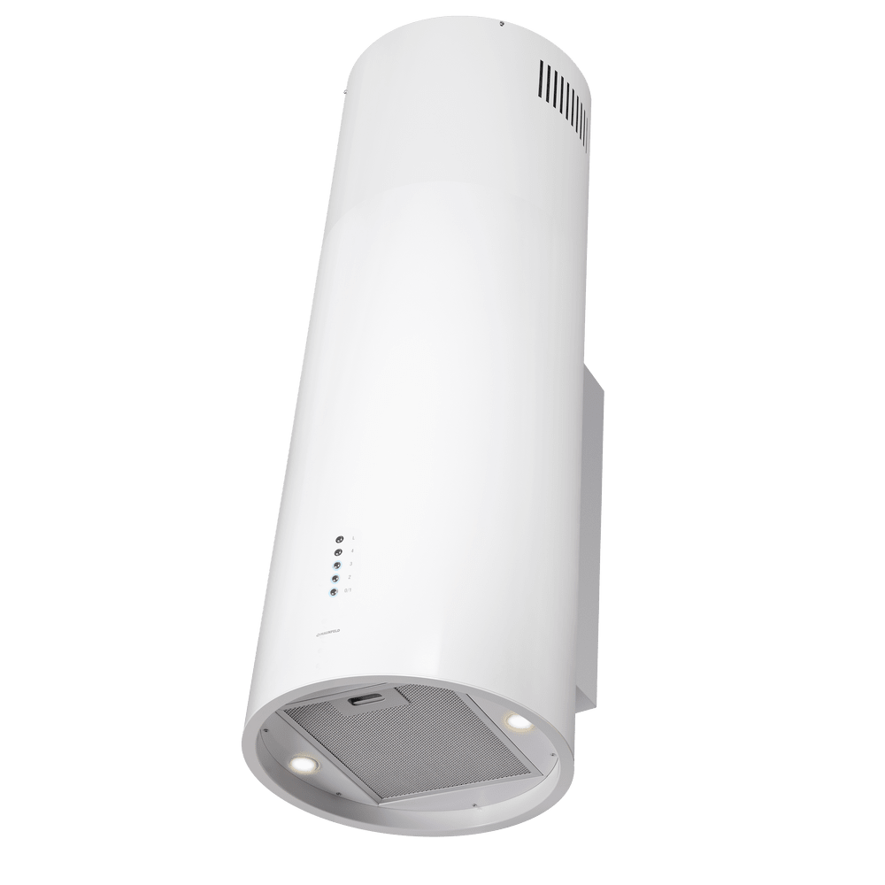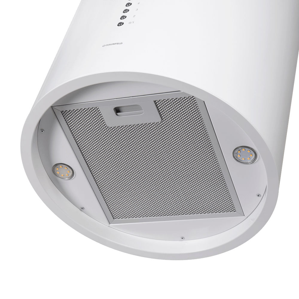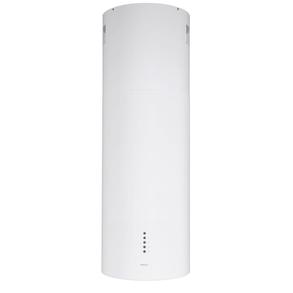 - Универсальное решение для современного интерьера: Дизайн в цвете белого металла и цилиндрическая форма делают вытяжку стильным элементом, способным дополнить кухню в любом стиле — от минимализма до лофта.
