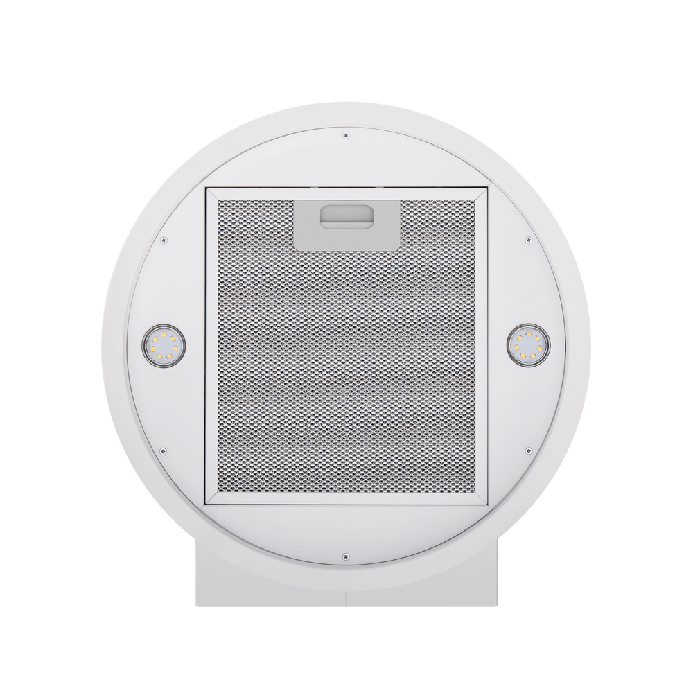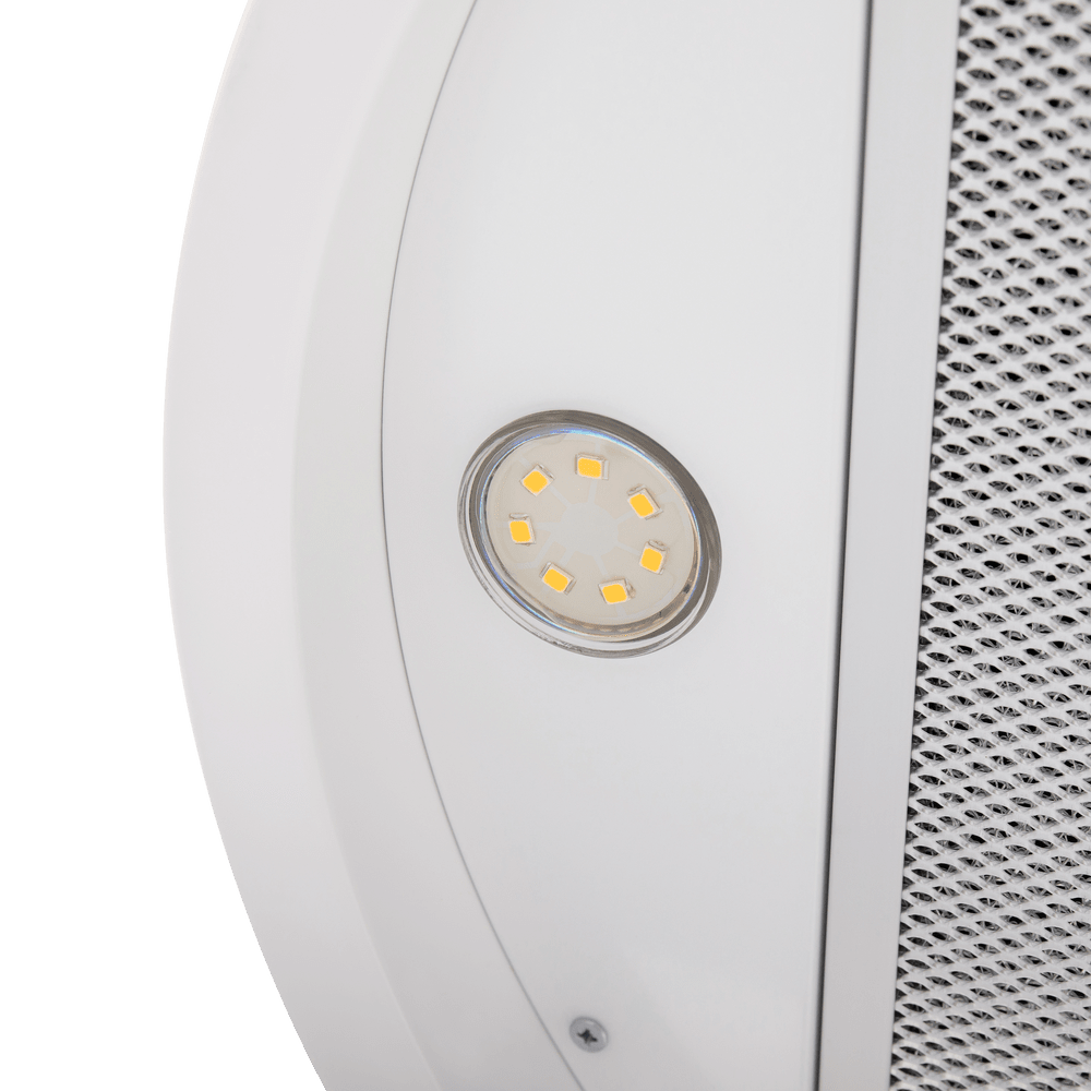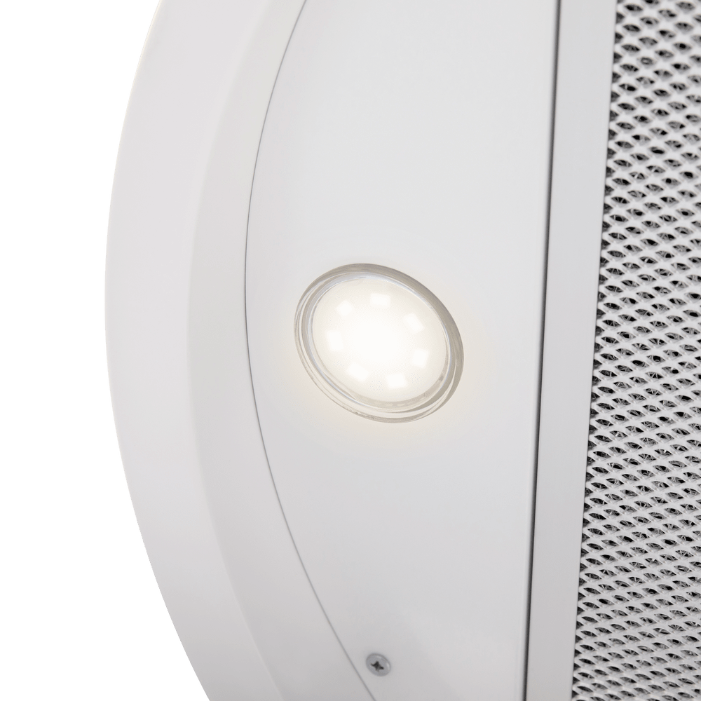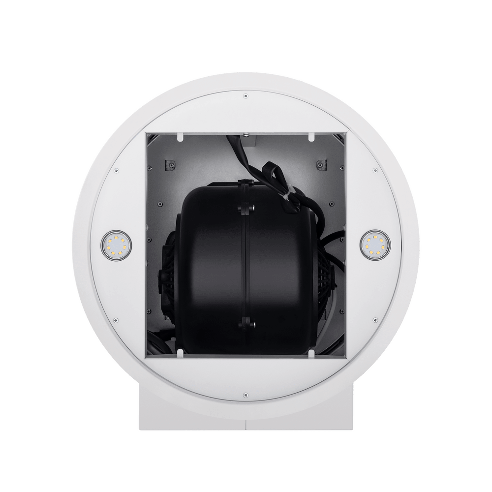 - Универсальное решение для современного интерьера: Дизайн в цвете белого металла и цилиндрическая форма делают вытяжку стильным элементом, способным дополнить кухню в любом стиле — от минимализма до лофта.