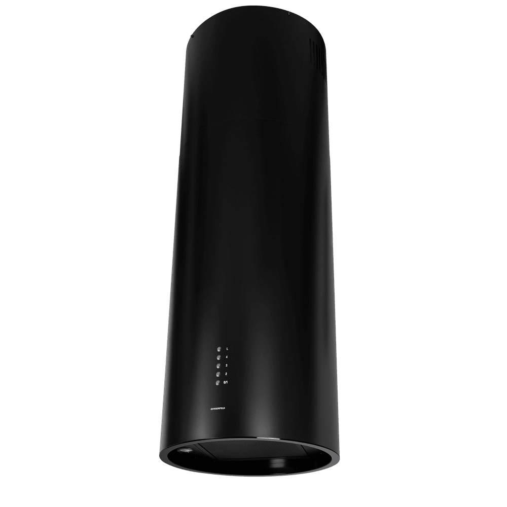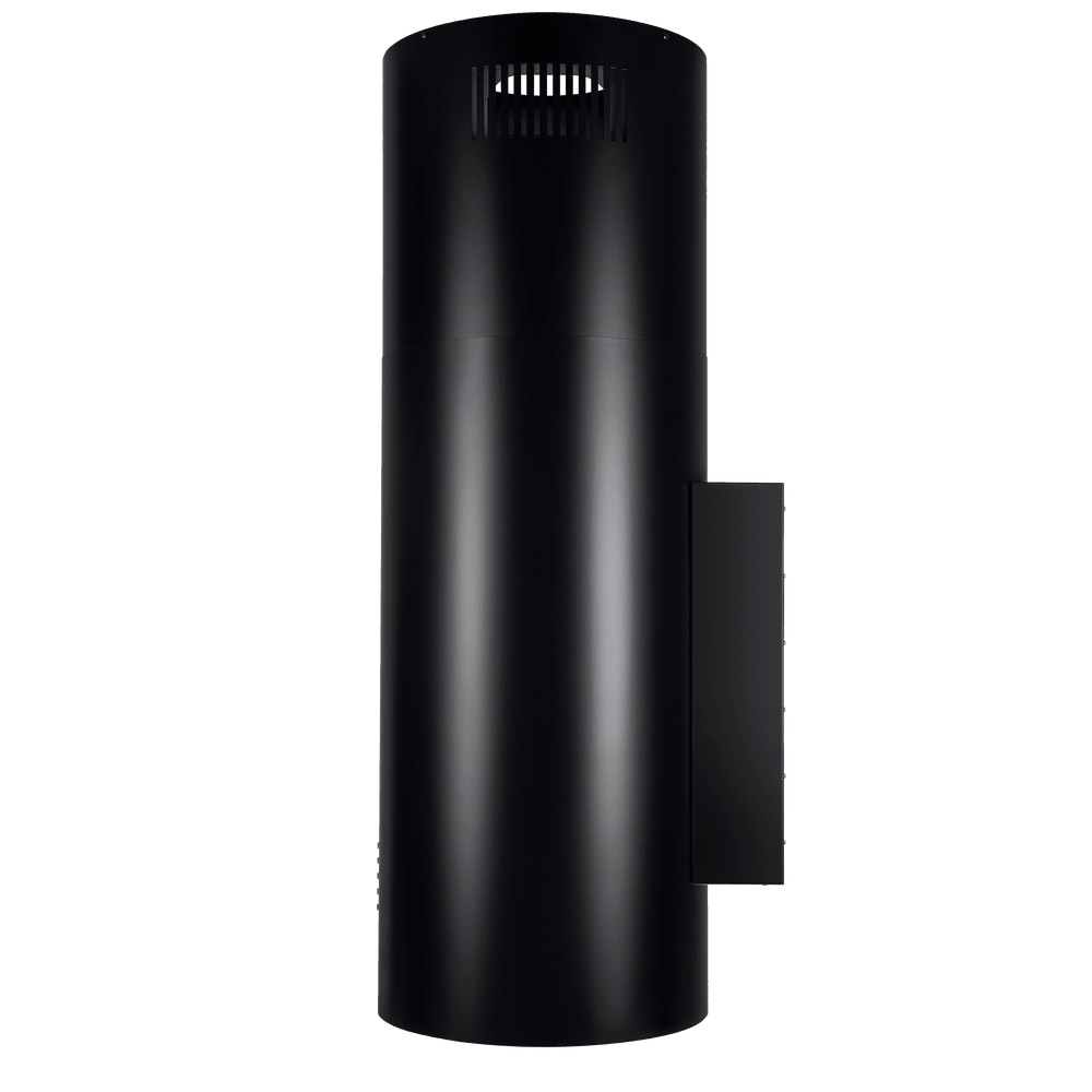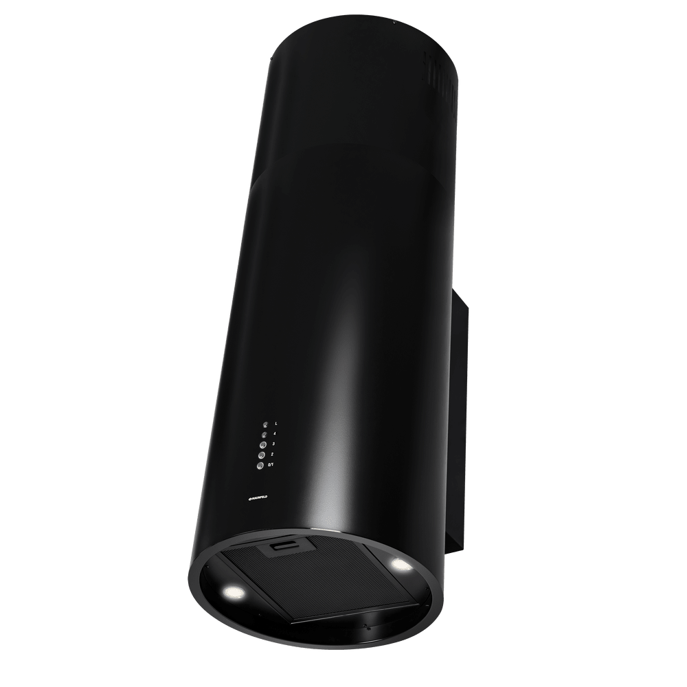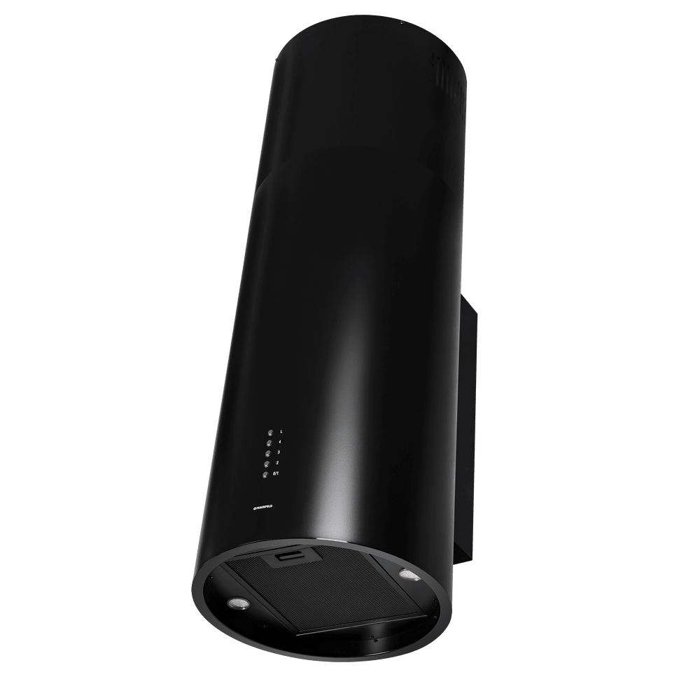 - Стильный дизайн и простота установки: Цилиндрическая форма и покрытие из черного металла придают модели современный элегантный вид. Настенный тип монтажа и компактные размеры позволяют легко вписать вытяжку в любой интерьер без сложного монтажа.