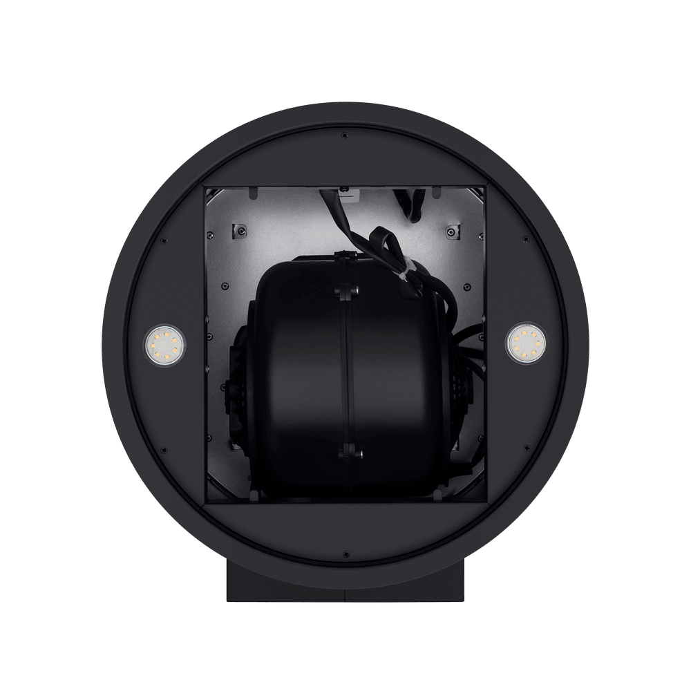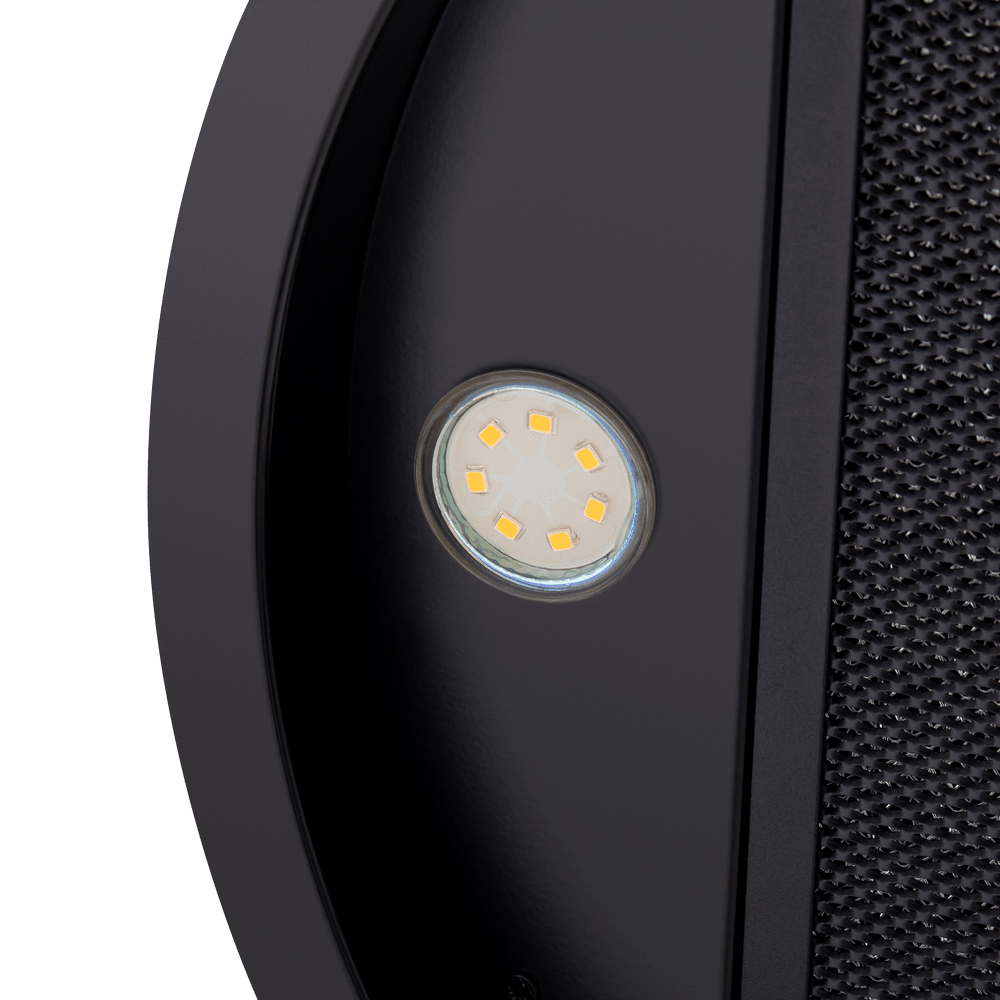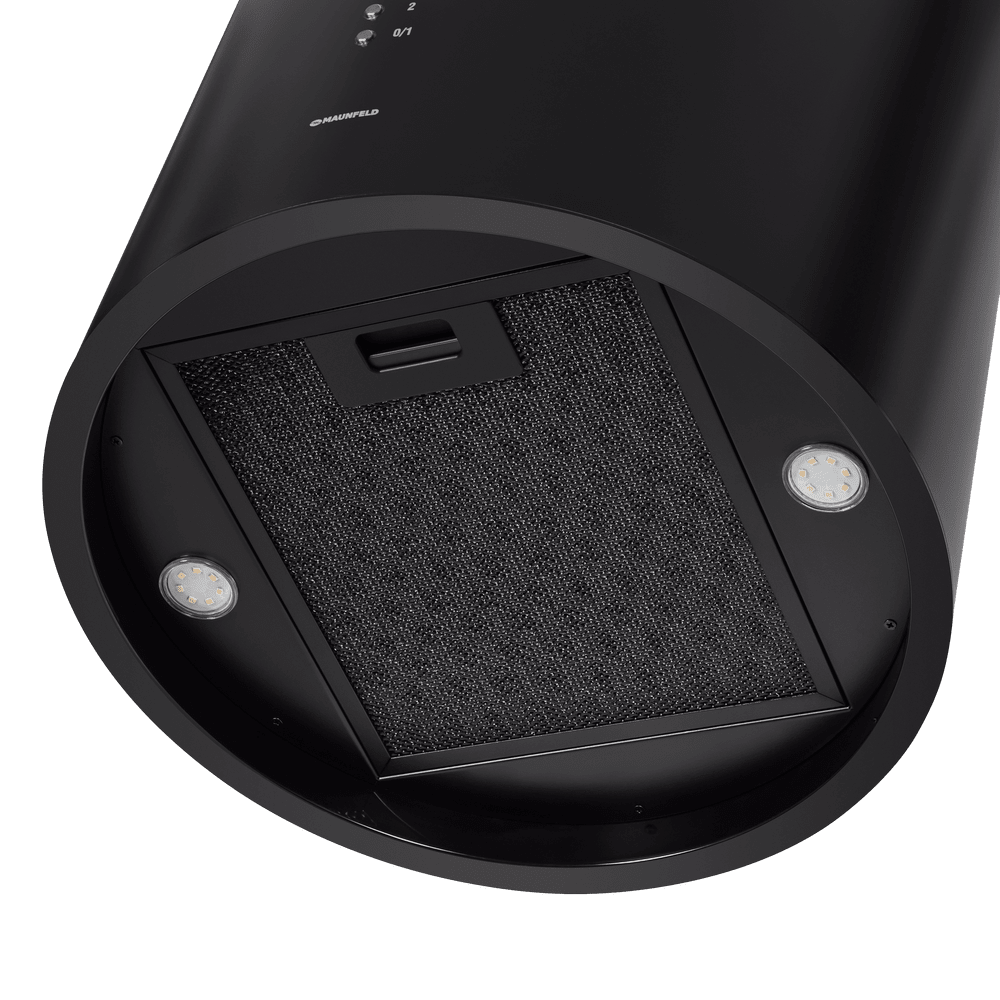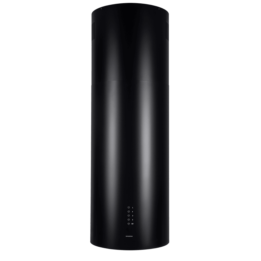 - Стильный дизайн и простота установки: Цилиндрическая форма и покрытие из черного металла придают модели современный элегантный вид. Настенный тип монтажа и компактные размеры позволяют легко вписать вытяжку в любой интерьер без сложного монтажа.