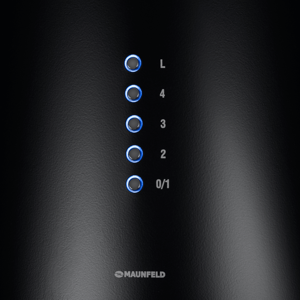 Настенная вытяжка Maunfeld Lee Wall 39 Long Black — это стильное и эффективное решение для современной кухни. Модель с производительностью 1000 м³/ч обеспечивает чистый воздух на кухнях площадью до 20 м². Оснащена четырьмя скоростями работы, электронным кнопочным управлением с таймером и ярким светодиодным освещением (2 лампы по 2 Вт). Благодаря компактным габаритам (высота 145 см, ширина 38.7 см, глубина 48 см), цилиндрической форме, энергоэффективной работе с уровнем шума всего 52 дБ и съемному металлическому жировому фильтру, вытяжка легко вписывается в любой интерьер и предлагает удобную эксплуатацию.