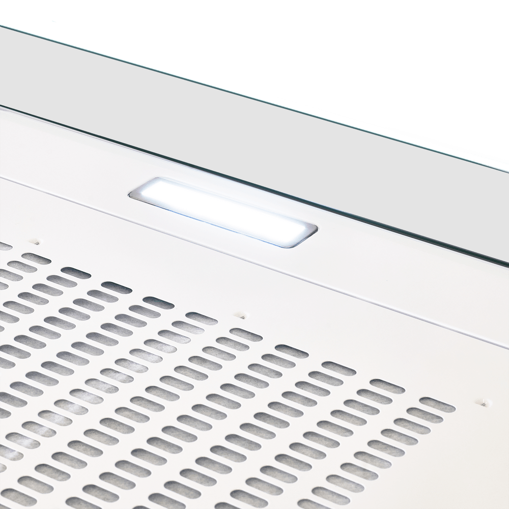- Галогеновое освещение и энергоэффективность: Галогеновая лампа дает яркий, комфортный для глаз свет над варочной поверхностью. Эффективная работа мотора обеспечивает хорошую производительность при умеренном энергопотреблении.