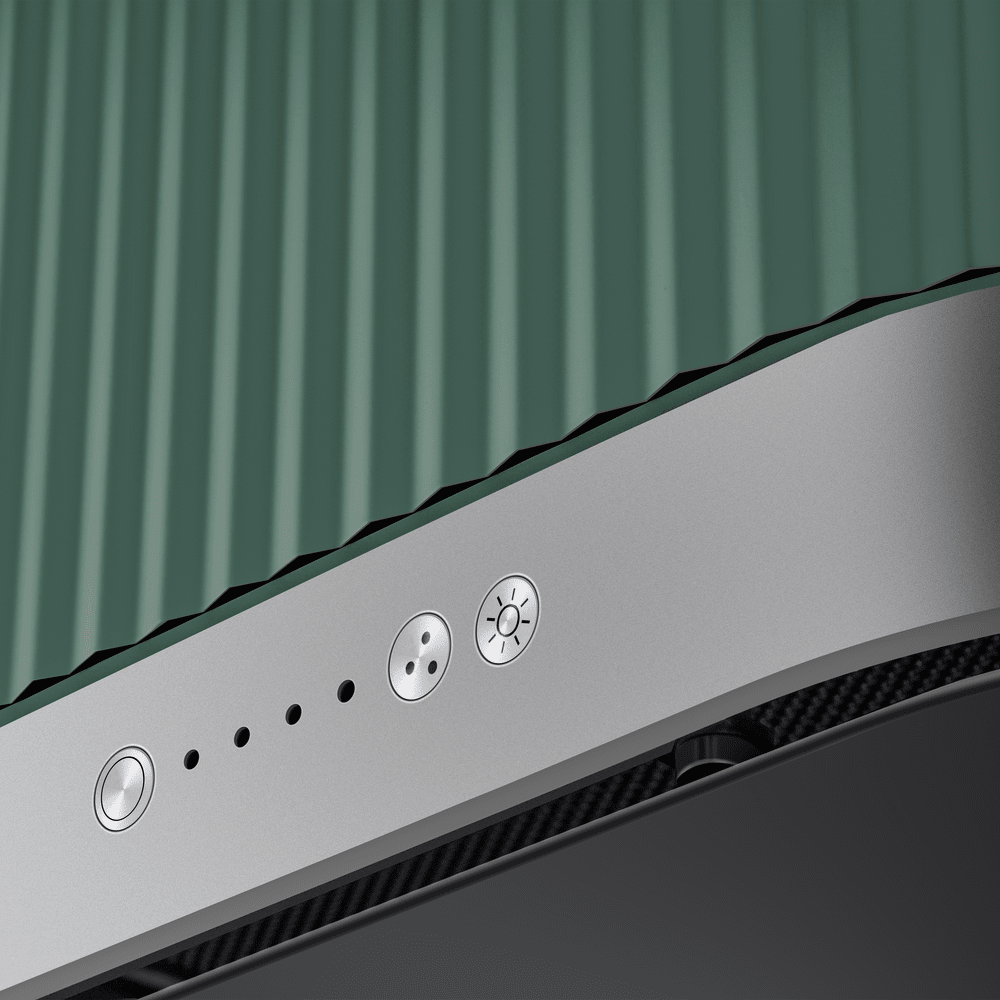 - Элегантный дизайн с зеленым цилиндрическим корпусом и польским качеством: Уникальный зеленый цвет и нестандартная форма делают вытяжку стильным арт-объектом, а европейское производство гарантирует высочайшее качество материалов и сборки.