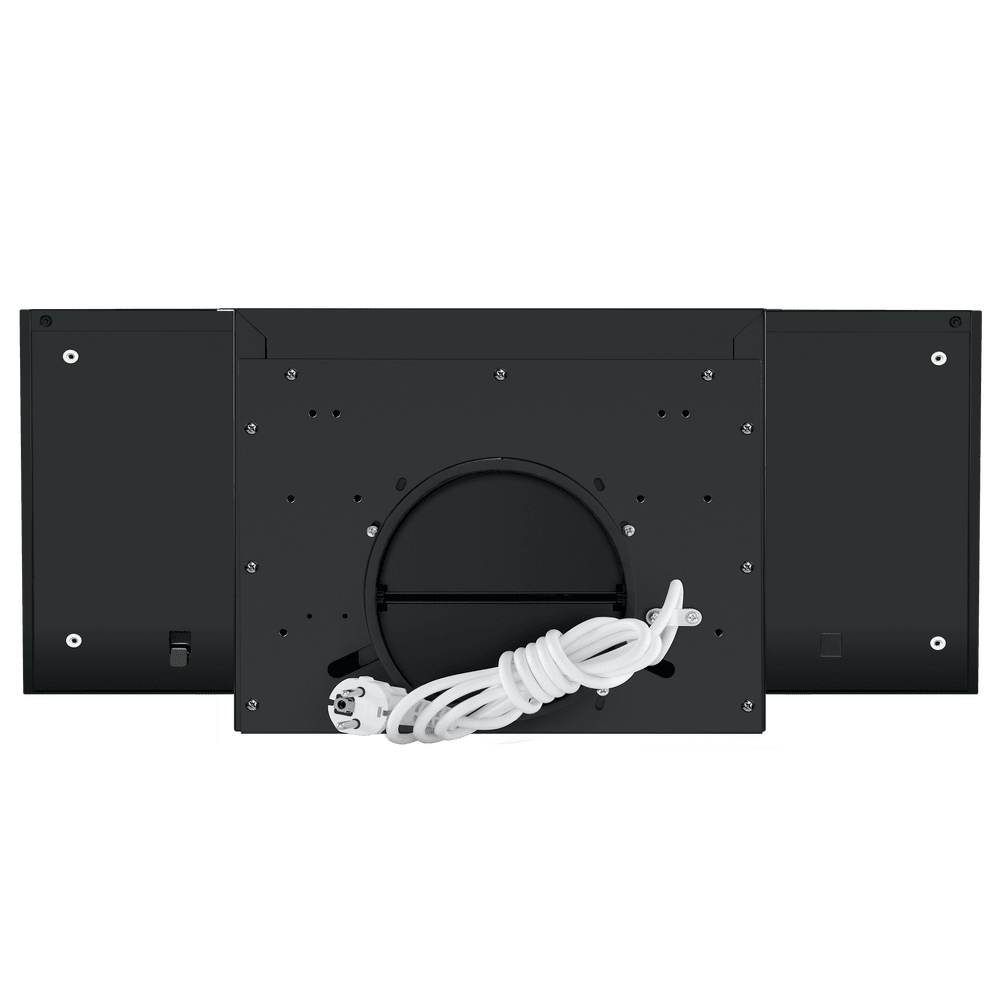 - Современный дизайн и высокая функциональность: Черный стеклянный фасад и лаконичный прямоугольный дизайн делают вытяжку универсальным элементом современного интерьера. При этом она оснащена передовыми функциями: пультом ДУ, таймером, стеклянным экраном и периметрической системой всасывания, что объединяет эстетику с передовыми технологиями.