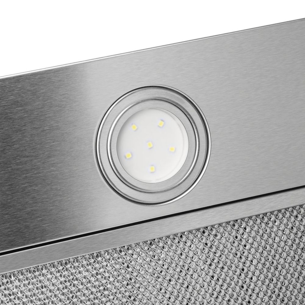 - Широкая рабочая поверхность: Широкая рабочая поверхность вытяжки обеспечивает обширную зону всасывания, что позволяет эффективно улавливать пар, запахи и частицы жира непосредственно у их источника, повышая общую эффективность очистки воздуха на кухне.
