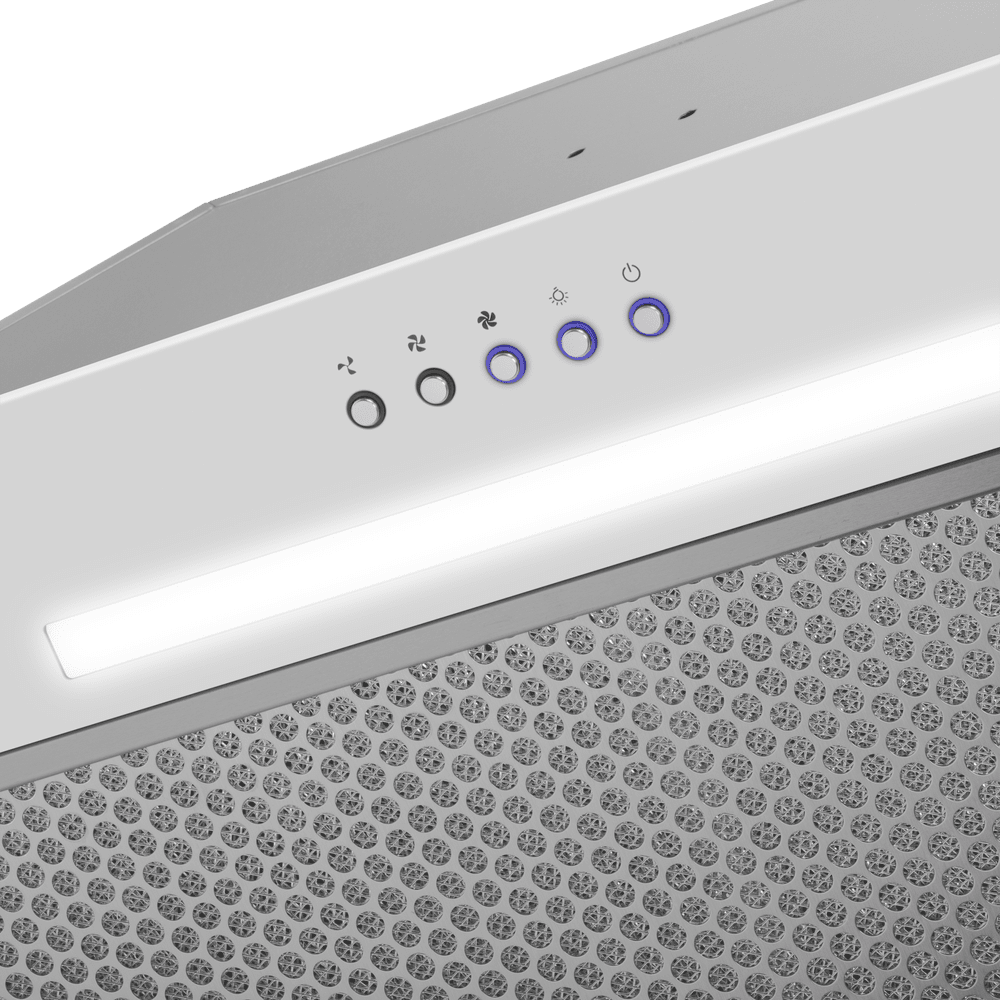 - Светлый и гармоничный дизайн: белый встраиваемый корпус для визуального расширения пространства: Белый цвет корпуса и лаконичный дизайн делают вытяжку не только функциональным прибором, но и стильным элементом, который усиливает ощущение света и простора даже на компактной кухне, идеально встраиваясь в общую концепцию.