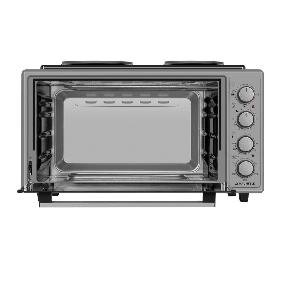 - 2 встроенные конфорки для дополнительной функциональности: Наличие 2 конфорок на верхней панели позволяет использовать печь как полноценную варочную поверхность. Вы можете одновременно запекать блюдо в духовке и готовить гарнир или соус на плите, экономя время и место.