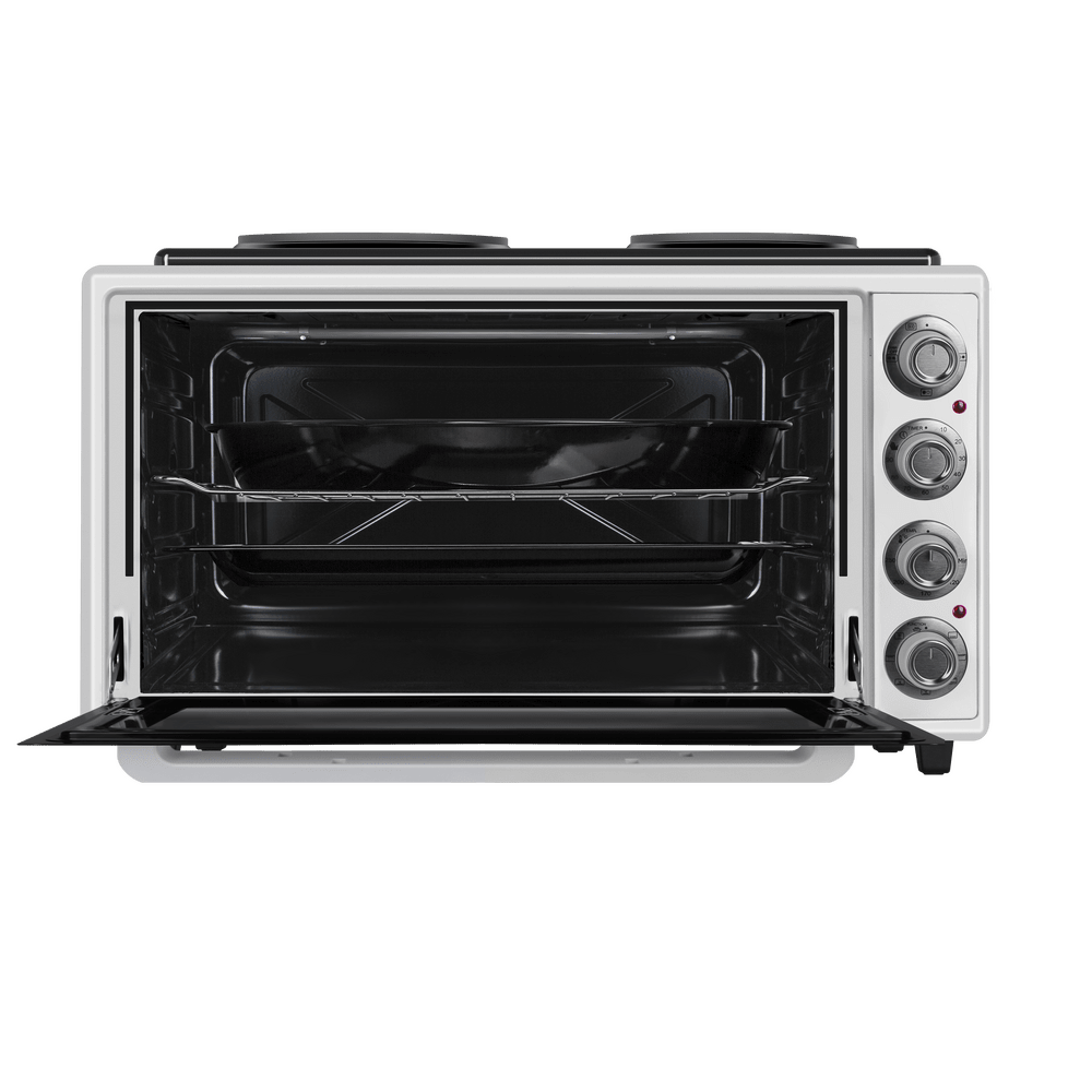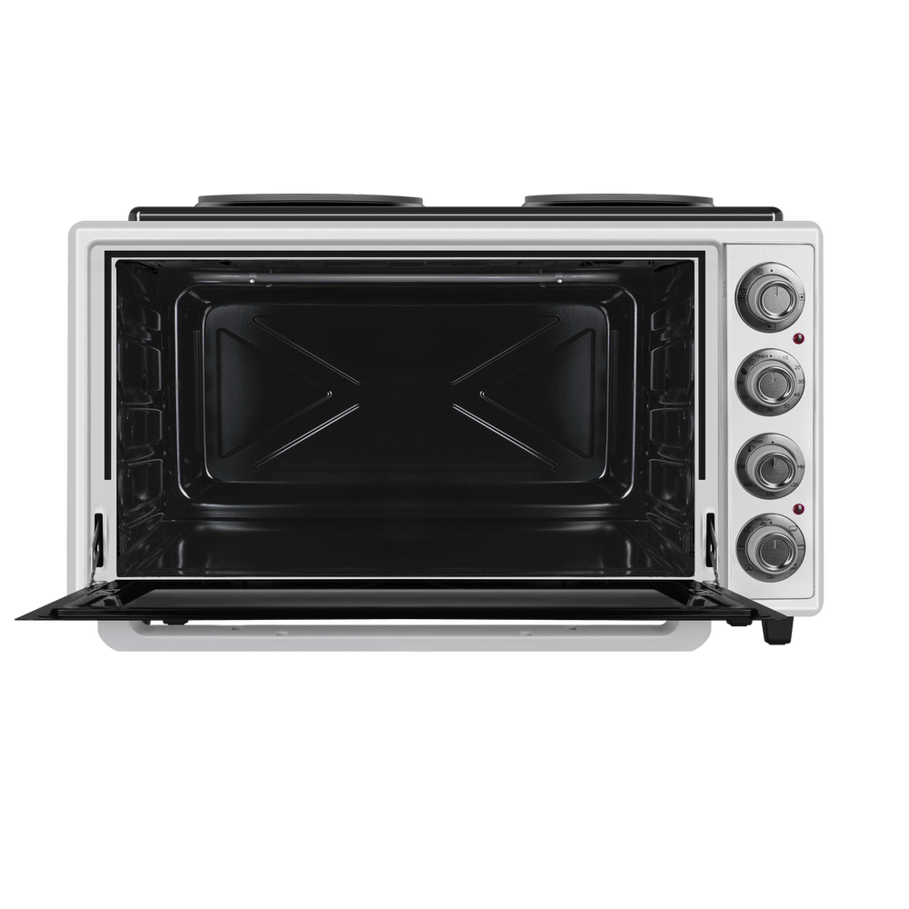 - 2 встроенные конфорки для максимальной функциональности: Наличие двух конфорок на верхней панели позволяет использовать печь как полноценную варочную поверхность. Вы можете одновременно запекать блюдо в духовке и готовить гарнир или соус на плите, экономя время и место.