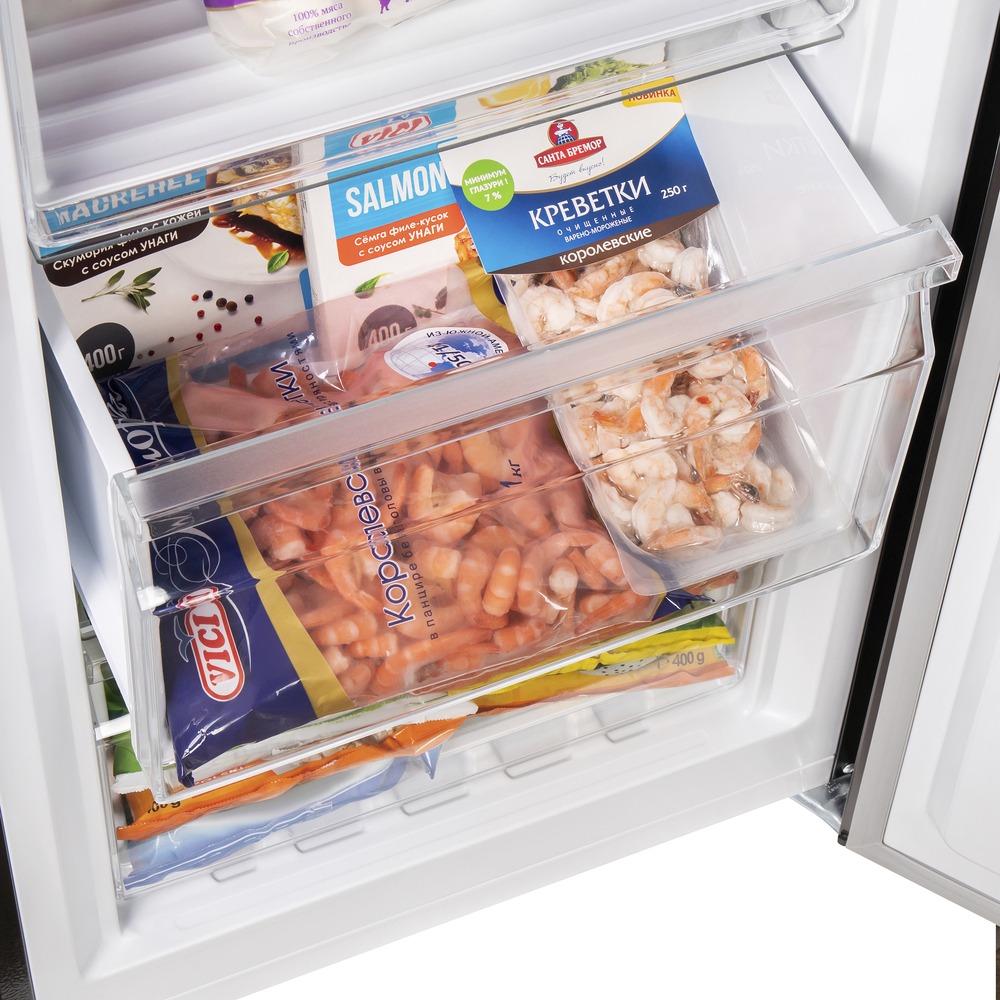 Технология NoFrost автоматически предотвращает образование наледи и инея на стенках камеры и продуктах. Это не только избавляет от необходимости ручной разморозки, но и обеспечивает стабильную температуру и оптимальную влажность для лучшей сохранности заморозки.