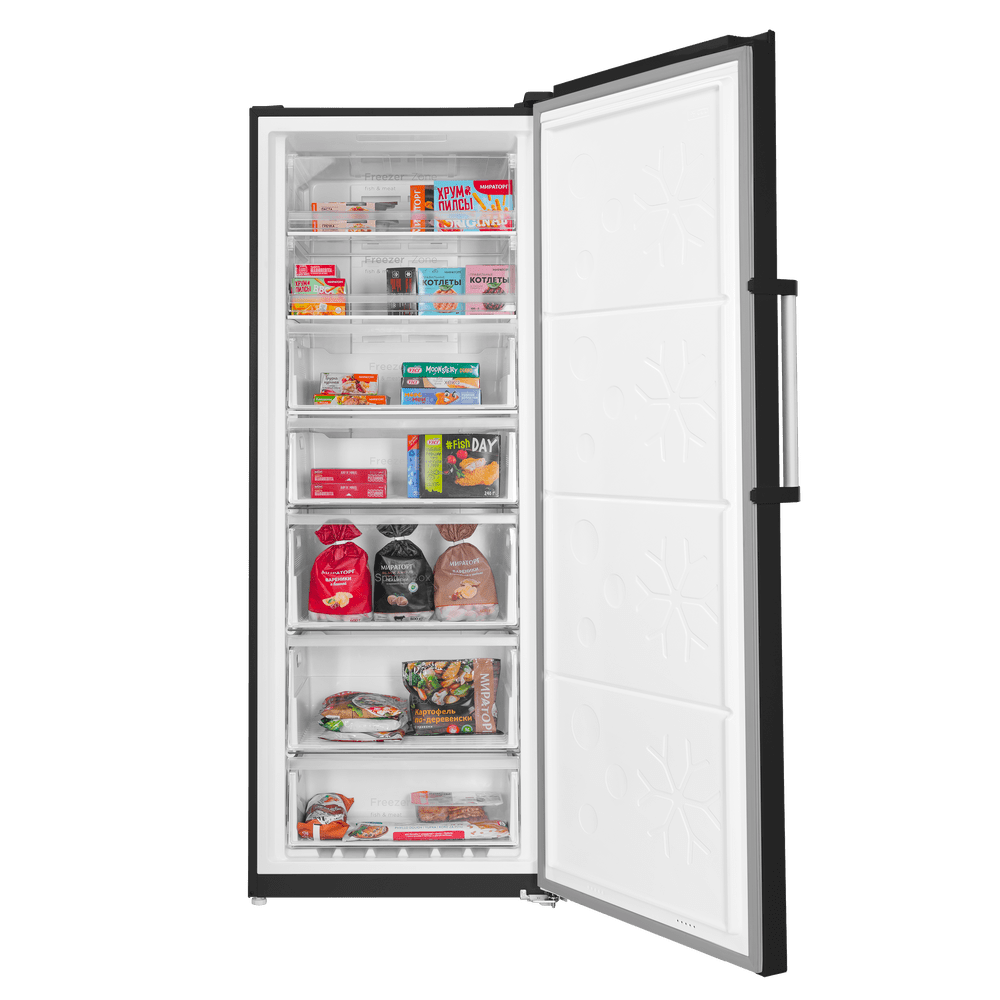 Морозильная камера Maunfeld MFFR185SB — это премиальный выбор для тех, кто ценит передовые технологии, вместительность, тишину и безупречный стиль. Она идеально подходит для создания больших запасов, гарантируя их идеальную сохранность и освобождая владельца от любых хлопот по обслуживанию.