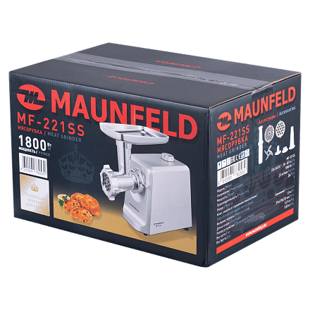 Электрическая мясорубка MAUNFELD MF-221SS разработана для максимальной производительности и безопасности в повседневном использовании: