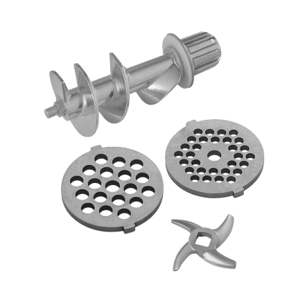 - 5 насадок в комплекте: В набор входят 3 решетки для фарша разного помола, а также насадки для приготовления домашних колбас и кеббе. Это превращает мясорубку в многофункциональный кухонный центр.