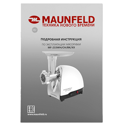 Электрическая мясорубка MAUNFELD MF-233WH разработана для максимальной производительности и безопасности в повседневном использовании:
