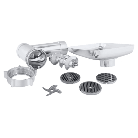 - Большое количество насадок для любых задач: В комплект входят 3 решетки для фарша разного помола, а также специальные насадки для приготовления домашних колбас и кеббе. Это превращает мясорубку в многофункциональный кухонный центр.