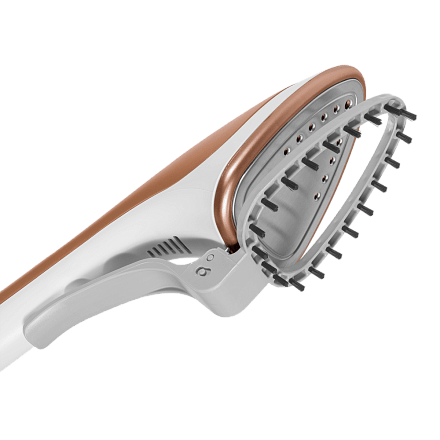 - Специальное сопло и защита от прожигания: Особая форма сопла позволяет отпаривать сложные участки (воротники, между пуговицами). Нагревающаяся подошва защищена от прожигания ткани.