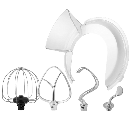 - Комплект насадок для любых рецептов: В комплект входят три необходимые насадки: венчик для взбивания, насадка для перемешивания и крюк для теста. Это покрывает все основные кулинарные потребности — от замешивания густого теста до взбивания легких кремов.