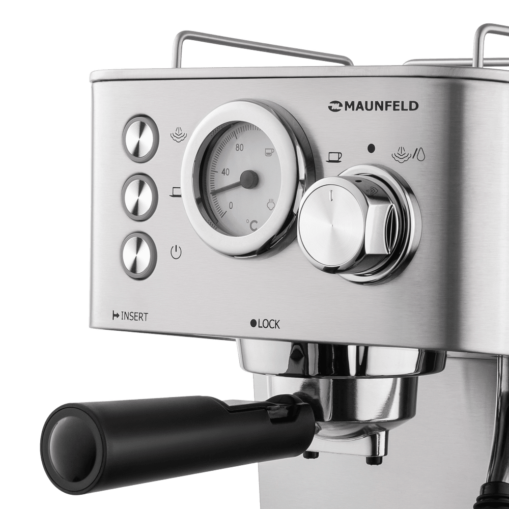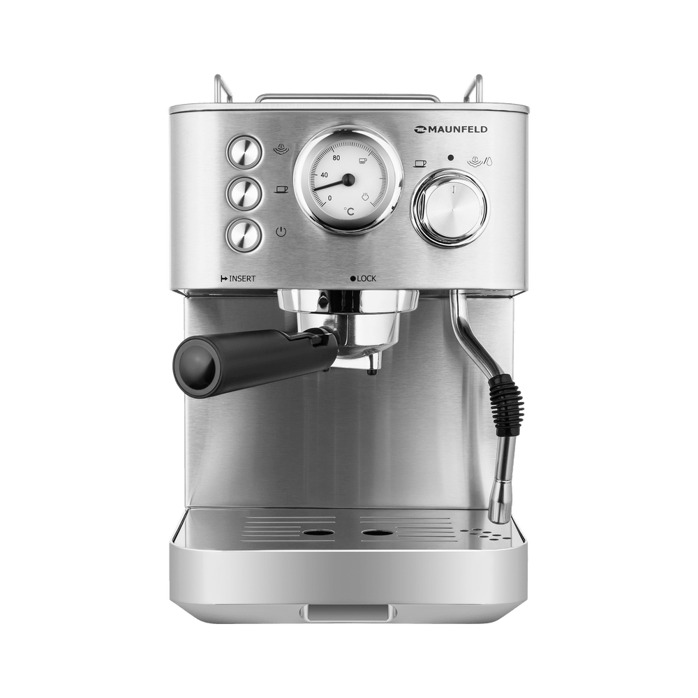 Кофемашина MAUNFELD MF-721S PRO — это стильное и надежное устройство рожкового типа, предназначенное для приготовления классического эспрессо и всех кофейных напитков на его основе. Корпус выполнен из нержавеющей стали, устойчивой к механическим воздействиям, что гарантирует долговечность и сохранение презентабельного внешнего вида на долгие годы. Максимальная мощность 1140 Вт обеспечивает быстрый нагрев и стабильную работу. Объем резервуара для воды составляет 1500 мл, что позволяет готовить множество порций без частого наполнения. Электронное управление осуществляется с помощью простых и надежных поворотных переключателей, а на приборной панели расположены стильные аналоговые часы, добавляющие шарма. Аппарат работает с молотым кофе. Встроенный вспениватель для молока представляет собой простую и надежную конструкцию без дополнительных резервуаров, что избавляет от необходимости частой очистки системы от накипи. Вы можете одновременно приготовить две порции напитка, что особенно удобно утром или для компании. Предусмотрена возможность регулировки крепости и степени помола для идеального вкуса. Автоматическое отключение — приятная опция, которая предотвращает перегрев системы и заботится о вашей безопасности, если вы забыли выключить прибор. Режим подогрева позволяет выбрать оптимальную температуру подачи напитка. В комплекте идет съемный контейнер для сбора капель, который легко очищается. Гарантия от производителя составляет 12 месяцев.