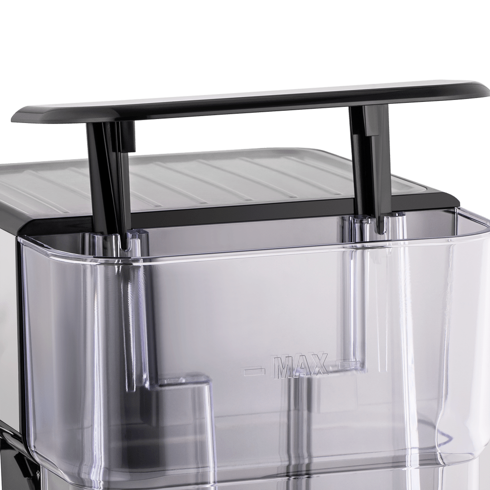 - Вместительный резервуар для воды: Резервуар объемом 1,5 литра выполнен из прочного матового пластика, устойчивого к царапинам. Он легко снимается для наполнения и очистки, а его большая емкость позволяет готовить кофе для компании без лишних хлопот.