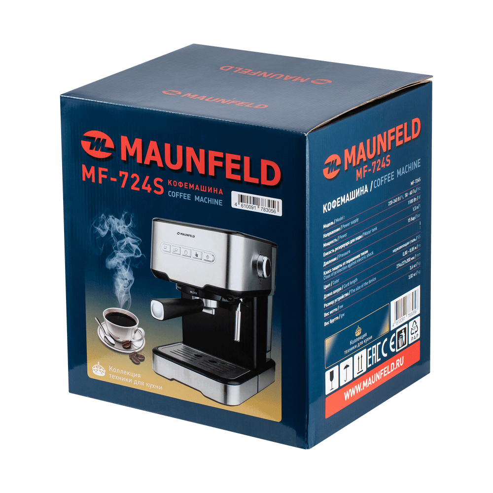 Кофемашина MAUNFELD MF-724S объединяет в себе современные технологии, удобство управления и продуманную конструкцию для повседневного использования:
