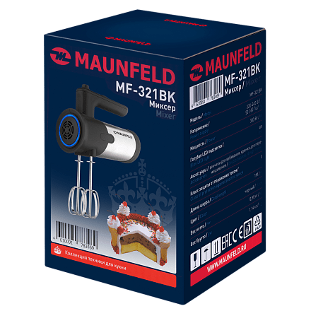Ручной миксер MAUNFELD MF-321BK объединяет в себе компактность, удобство управления и надежные материалы для повседневного использования: