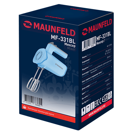 Ручной миксер MAUNFELD MF-331BL объединяет в себе компактность, удобство управления и надежные материалы для повседневного использования: