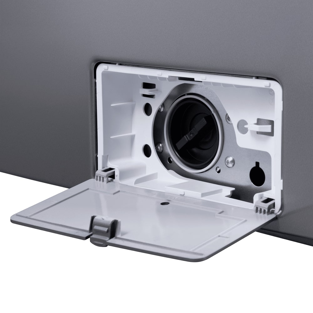 - Стильный дизайн: Серебристый металлический корпус легко впишется в современный интерьер ванной комнаты или кухни.