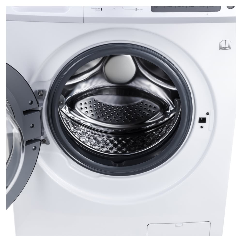 - Очистка паром: Технология обработки паром помогает устранять стойкие загрязнения, освежать белье, уменьшать сминаемость и обеспечивать гигиеническую чистоту, удаляя аллергены и бактерии.
