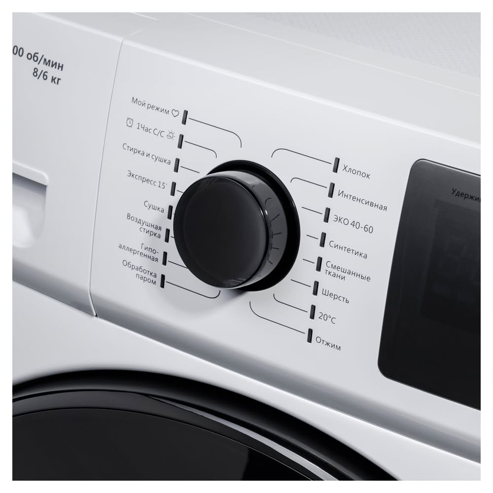 - Загрузка (стирка/сушка): 8 кг / 6 кг