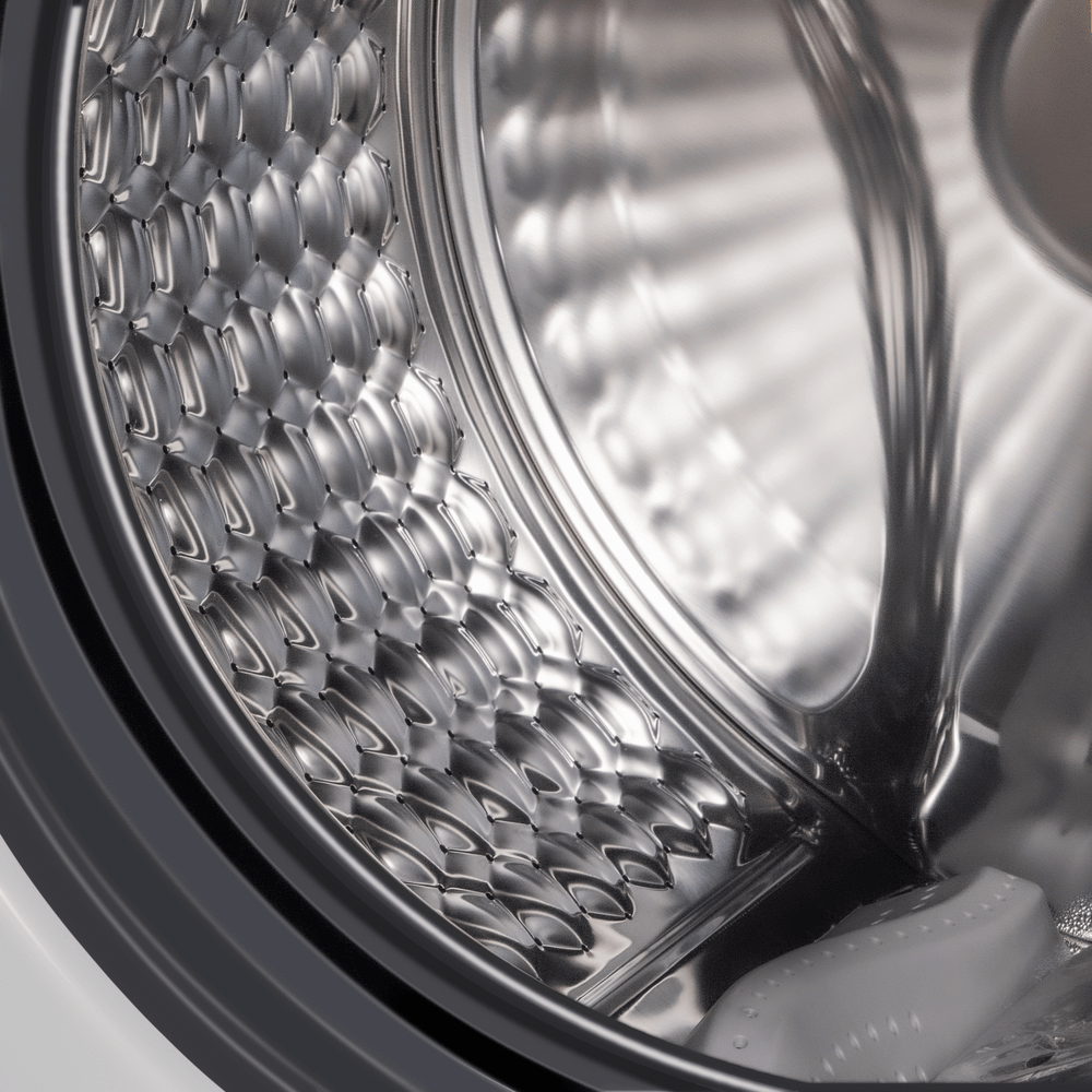 - Барабан из нержавеющей стали: Обеспечивает бережное скольжение белья, долговечность и устойчивость к коррозии.