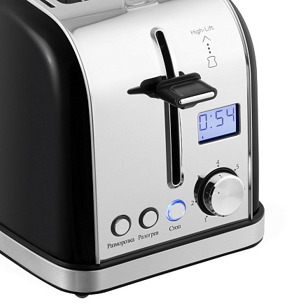- Дисплей и регулировка степени поджаривания: Удобный дисплей и регулятор позволяют точно выбрать и контролировать желаемую степень румяности тостов.