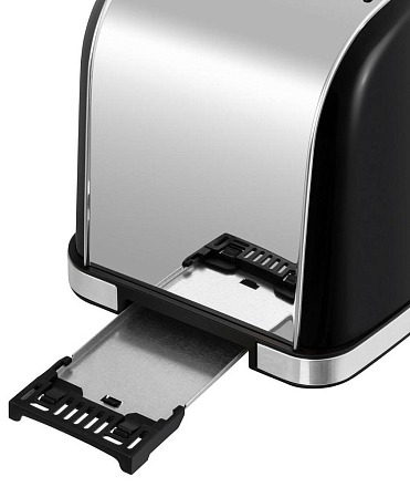 - Съемный поддон для сбора крошек: Удобный выдвижной поддон легко очищается от крошек, что позволяет поддерживать идеальную чистоту внутри тостера и предотвращает появление запаха горелого.