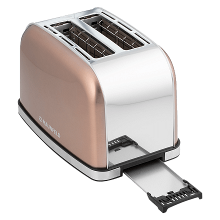 Тостер MAUNFELD MF-821BZ — это элегантное и функциональное устройство, выполненное из нержавеющей стали в благородном цвете бронза, которое станет стильным украшением любой современной кухни. Модель оснащена удобным механическим программатором, с помощью которого вы можете легко выбирать желаемую степень обжарки — от легкого подогрева до интенсивного поджаривания. Три режима работы изделия позволяют подогреть остывшие тосты, разморозить замороженный хлеб или поджарить свежий до хрустящей корочки. Информативный цифровой дисплей отображает выбранные настройки, а также может показывать обратный отсчет времени приготовления, обеспечивая полный визуальный контроль. Благодаря функции автоцентрирования, ломтики хлеба автоматически фиксируются по центру, что гарантирует их равномерное пропекание с обеих сторон. Удобный съемный поддон для сбора крошек позволяет легко очищать тостер, поддерживая идеальную чистоту внутри прибора и предотвращая появление запаха горелого. Два широких отсека позволяют одновременно поджаривать два ломтика. Компактные размеры позволяют разместить тостер на любой столешнице. Сочетание благородного бронзового цвета, прочного корпуса из нержавеющей стали и продуманного функционала делает этот тостер идеальным выбором для ценителей стиля и качества.