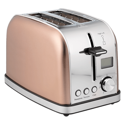 - Выбор степени обжарки: Удобный механический программатор позволяет точно выбрать желаемую степень румяности тостов — от слегка подогретых до интенсивно поджаренных.