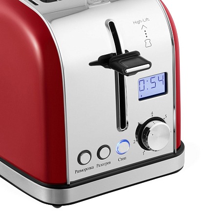 - Дисплей и регулировка степени поджаривания: Удобный дисплей и регулятор позволяют точно выбрать и контролировать желаемую степень румяности тостов.