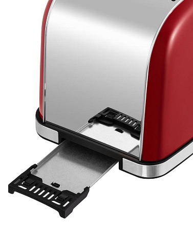- Съемный поддон для сбора крошек: Удобный выдвижной поддон легко очищается от крошек, что позволяет поддерживать идеальную чистоту внутри тостера и предотвращает появление запаха горелого.