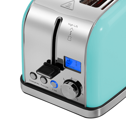 - Эксклюзивный мятный цвет и корпус из нержавеющей стали: Уникальный дизайн в сочетании с прочным корпусом из нержавейки делают тостер не только функциональным, но и стильным аксессуаром кухни.