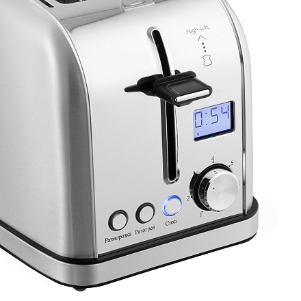 - Дисплей и регулировка степени поджаривания: Удобный дисплей и регулятор позволяют точно выбрать и контролировать желаемую степень румяности тостов.