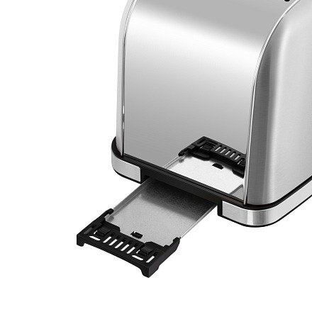 - Съемный поддон для сбора крошек: Удобный выдвижной поддон легко очищается от крошек, что позволяет поддерживать идеальную чистоту внутри тостера и предотвращает появление запаха горелого.