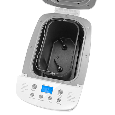 - 14 автоматических программ: Широкий выбор встроенных программ позволяет готовить различные виды хлеба, тесто для пиццы, кексы, джемы и многое другое, просто выбирая нужный режим.