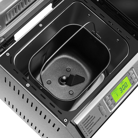 - Металлический корпус из нержавеющей стали: Прочный и долговечный корпус не только придает хлебопечке элегантный внешний вид, но и обеспечивает устойчивость к царапинам и механическим повреждениям.