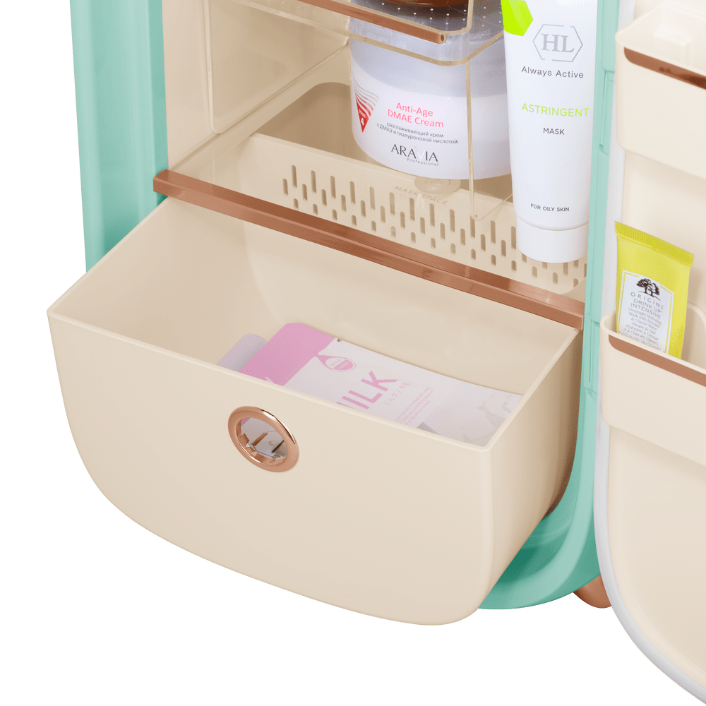 - Оптимальная вместимость: Просторная камера позволяет удобно разместить большой набор средств, включая упаковки нестандартного размера.