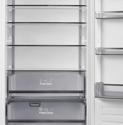 Встраиваемый тип установки с возможностью перенавешивания дверей позволяет идеально вписать технику в кухонный гарнитур. Современный хладагент R600a, долговечная эмаль корпуса и продуманная конструкция гарантируют надежную эксплуатацию на долгие годы.