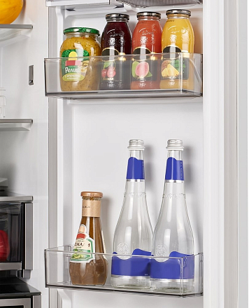 - Система No Frost — работает в обеих камерах, предотвращая образование инея и исключая необходимость ручного размораживания.