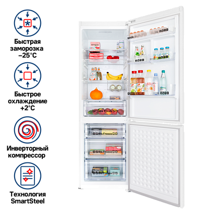 Холодильник MAUNFELD MFF195NFIW10 — это разумный выбор для практичных пользователей. Сочетание инверторной технологии, умного энергосбережения и заботливых систем контроля делает его не только функциональным, но и экономичным помощником в каждом доме.