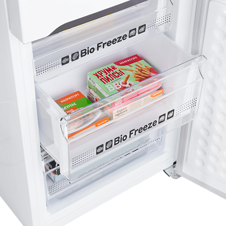 - Двухкамерная конструкция: Раздельное хранение свежих и замороженных продуктов