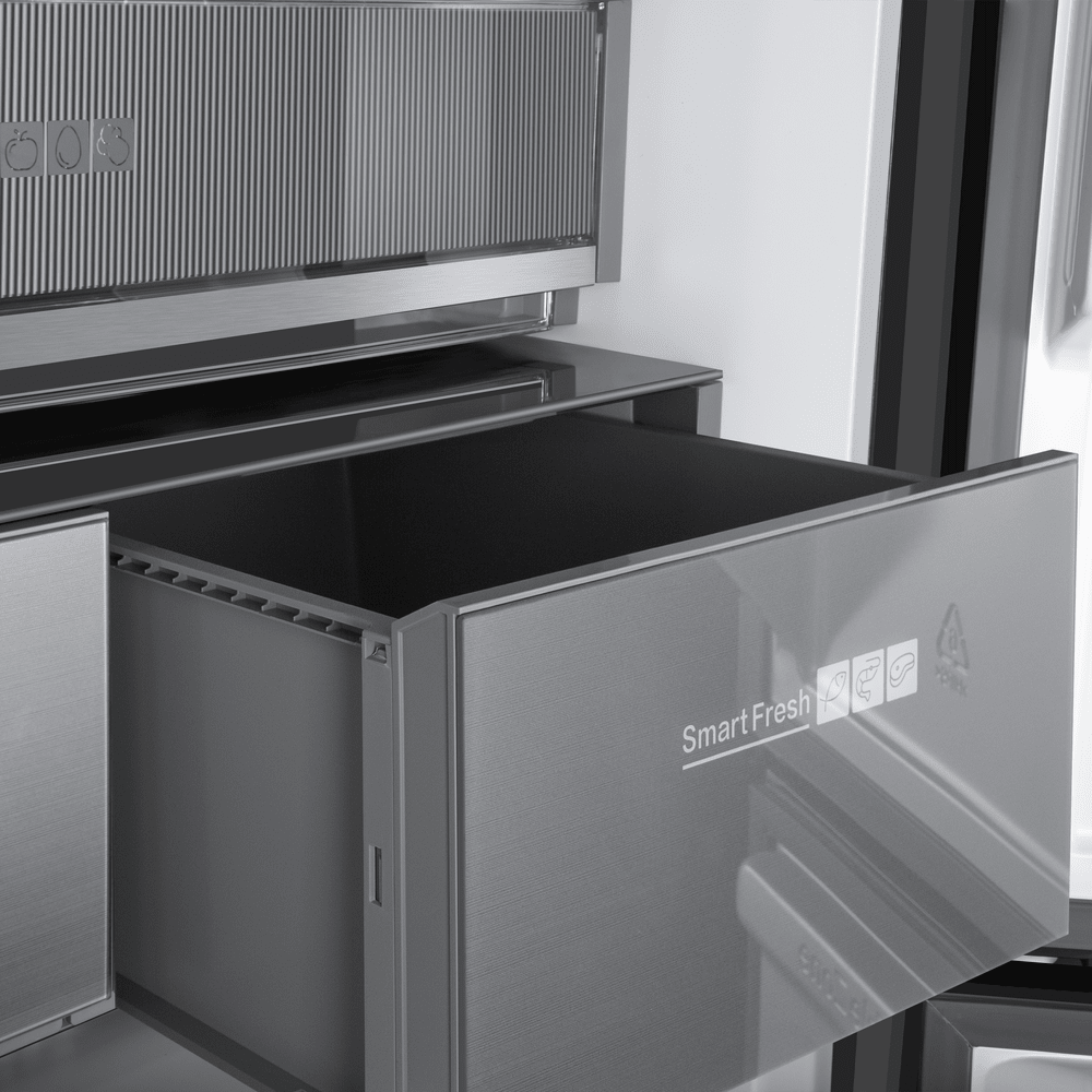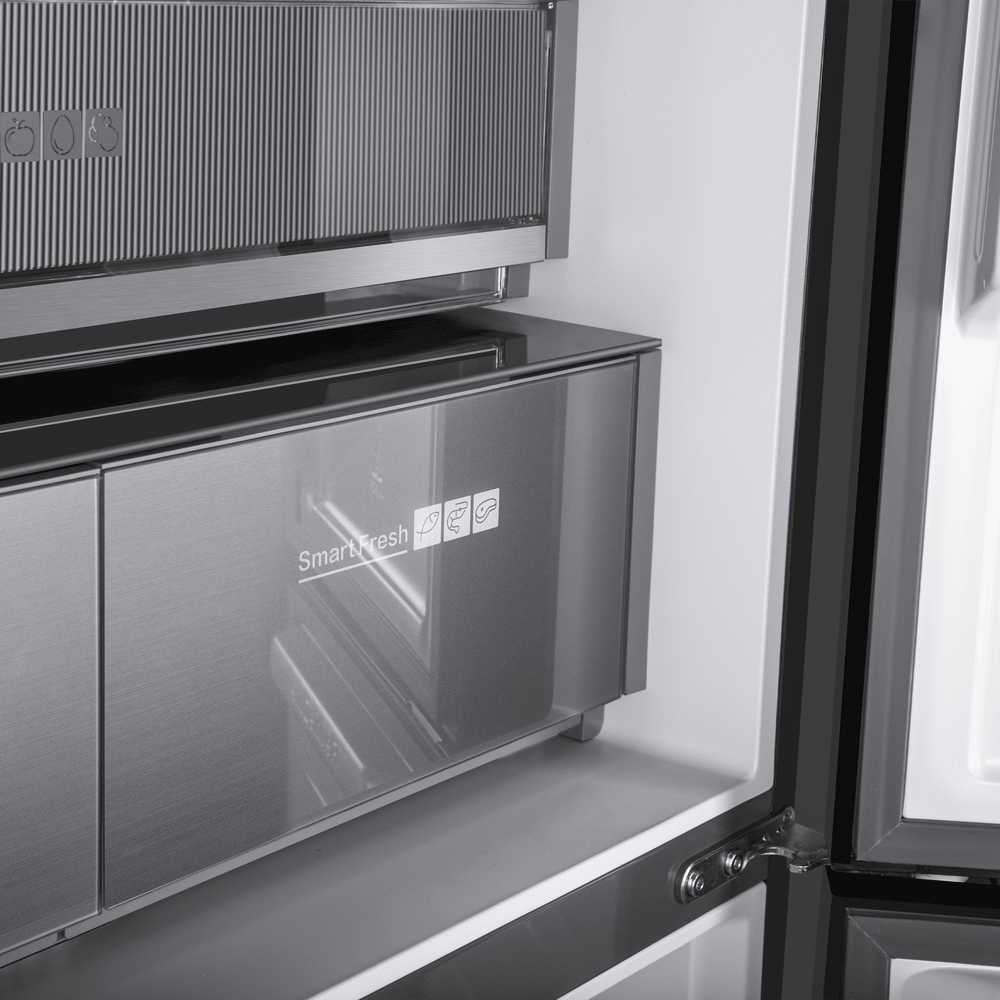 - Четыре двери, Flex Zone и ящики Humidity/Care — удобная организация пространства на 476 л