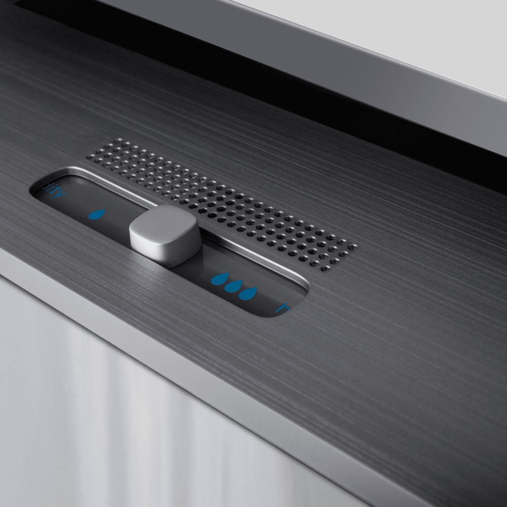 - Умные зоны хранения: MyZone для индивидуальных настроек, зона свежести, контейнеры Humidity и Care.