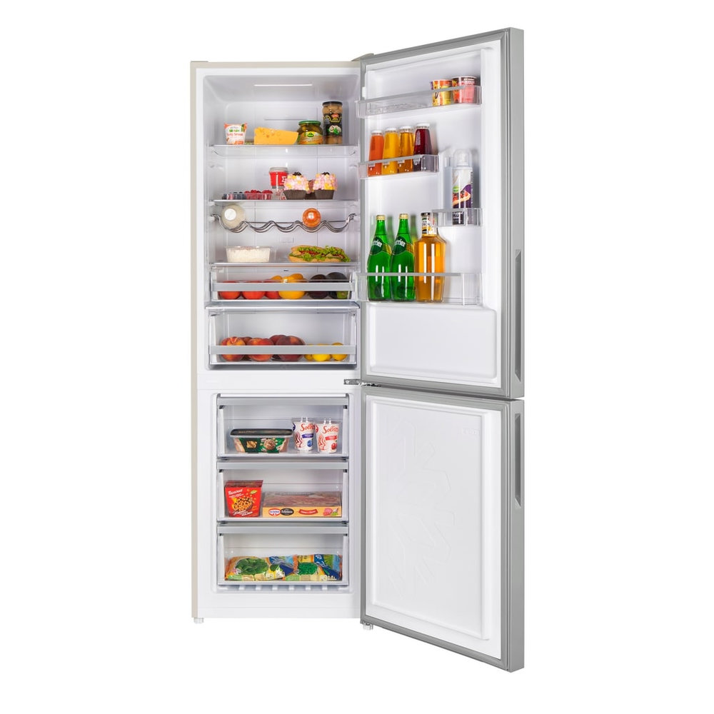 Холодильник Maunfeld MFF185NFBG — это двухкамерная модель в элегантном бежевом цвете, выполненная в компактных габаритах (185,5×59,5×64,5 см, В×Ш×Г), что делает её удобной для встраивания в стандартную кухонную мебель.