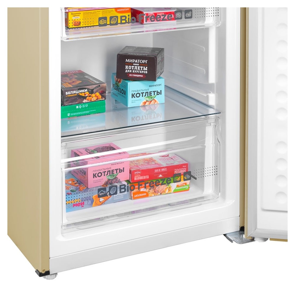 Внутреннее пространство организовано с помощью полок из закаленного стекла. Они отличаются повышенной прочностью (выдерживают до 20 кг), что позволяет размещать даже тяжелые продукты и посуду. Возможность легкой перестановки полок обеспечивает гибкую организацию хранения под любые нужды.